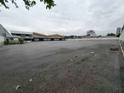 พื้นที่ดิน 6 ไร่ 2 งาน / พื้นที่ใช้สอย 4,100 ตารางเมตร ไม่รวมพื้นที่จอดรถกว่า 4 ไร่ / ทำเล สำโรงใต้ ปู่เจ้าสมิงพราย พื้นที่สีม่วง ขอ รง.4 ได้ / รถเทรลเลอร์เข้าออกได้