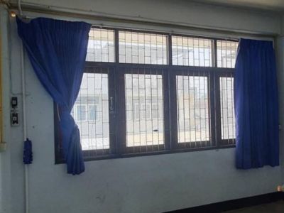 หน้าบ้านเป็นประตูเหล็กเลื่อน และมีประตูอลูมิเนียมเลื่อน